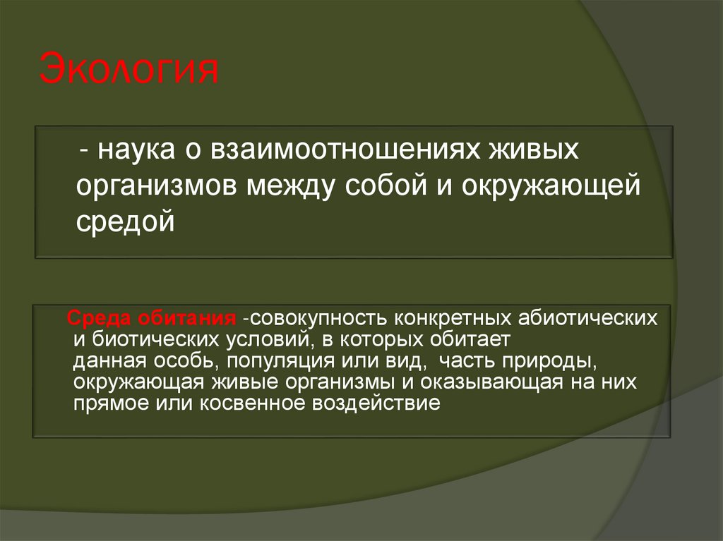 - наука о взаимоотношениях живыхорганизмов между собой и окружающей