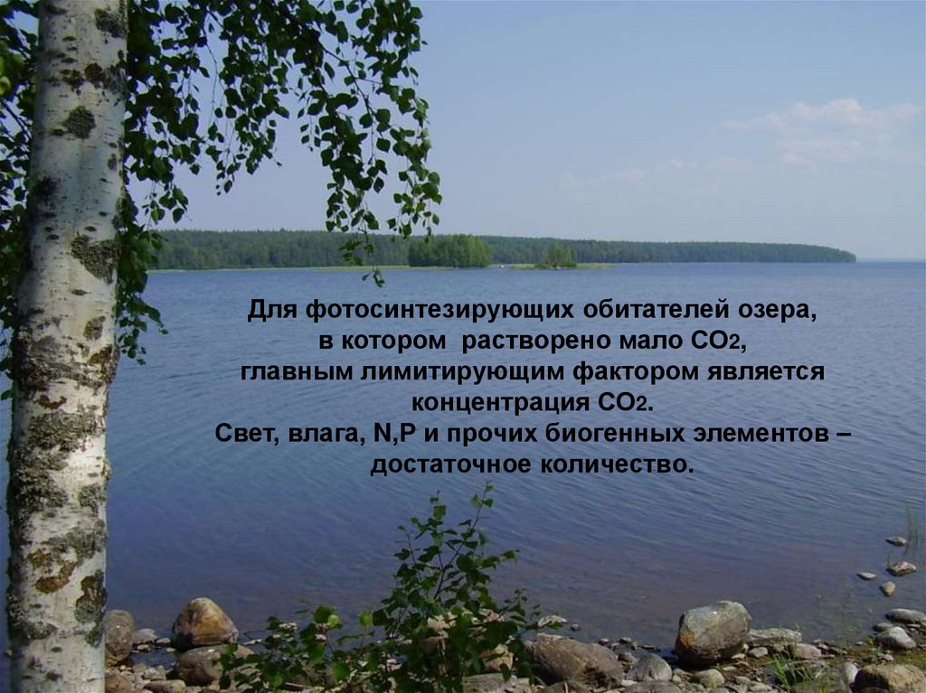 Для фотосинтезирующих обитателей озера,в котором растворено мало СО2,