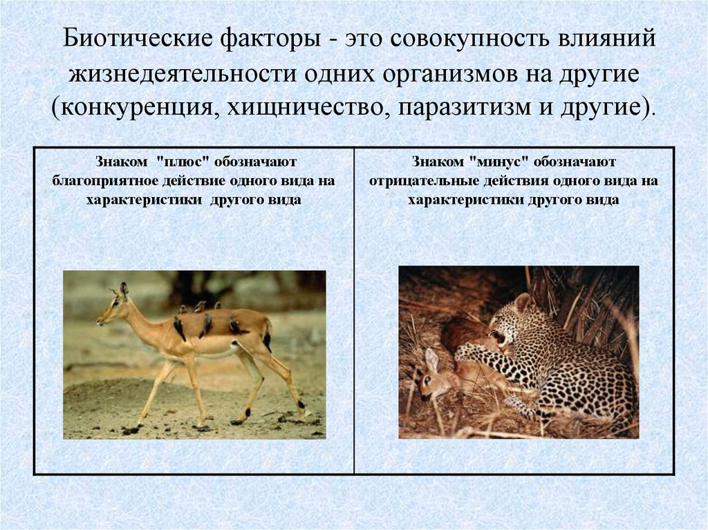 5. Биотические факторы - это совокупность влияний жизнедеятельности одних организмов на другие (конкуренция, хищничество,