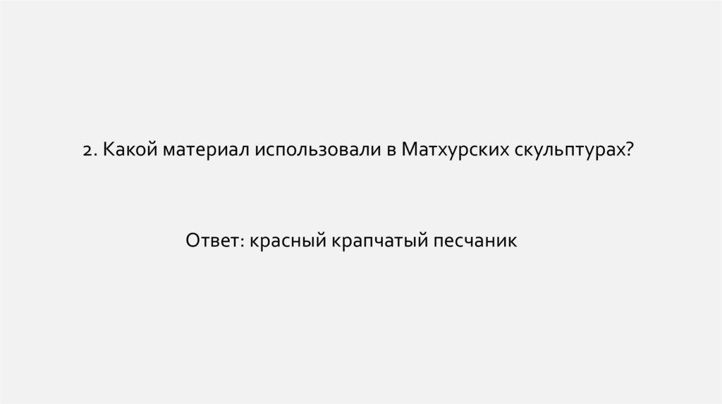 2. Какой материал использовали в Матхурских скульптурах?Ответ: красный крапчатый песчаник