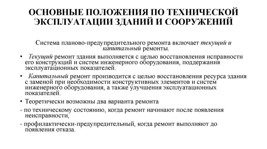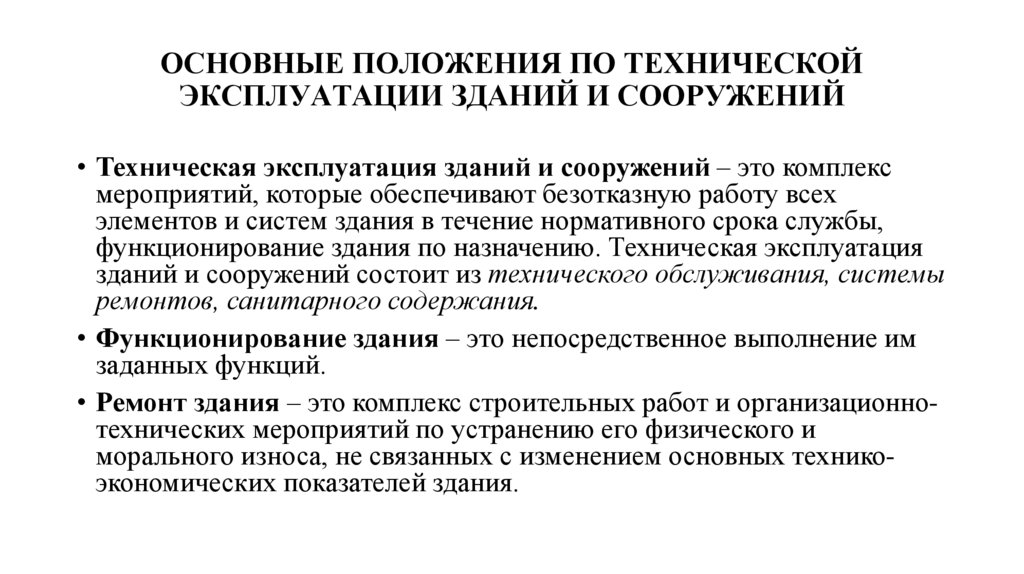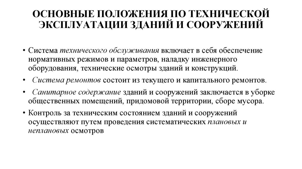 2. ОСНОВНЫЕ ПОЛОЖЕНИЯ ПО ТЕХНИЧЕСКОЙ ЭКСПЛУАТАЦИИ ЗДАНИЙ И СООРУЖЕНИЙ