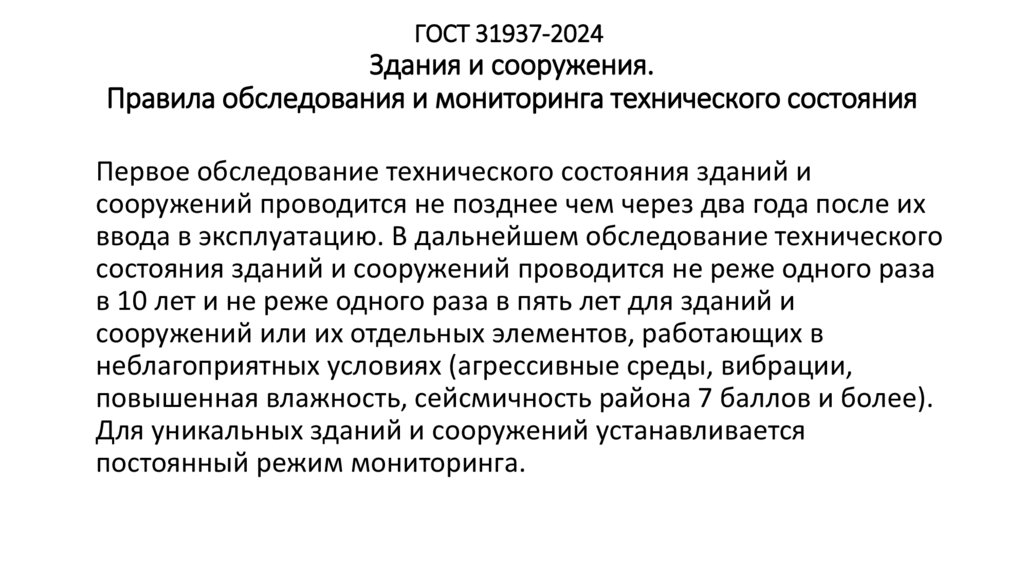 ГОСТ 31937-2024 Здания и сооружения. Правила обследования имониторинга технического состояния