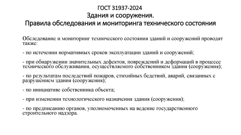 13. ГОСТ 31937-2024 Здания и сооружения. Правила обследования и мониторинга технического состояния
