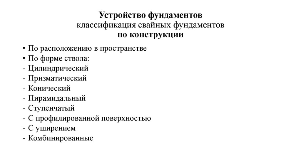 18. Устройство фундаментов классификация свайных фундаментов по конструкции