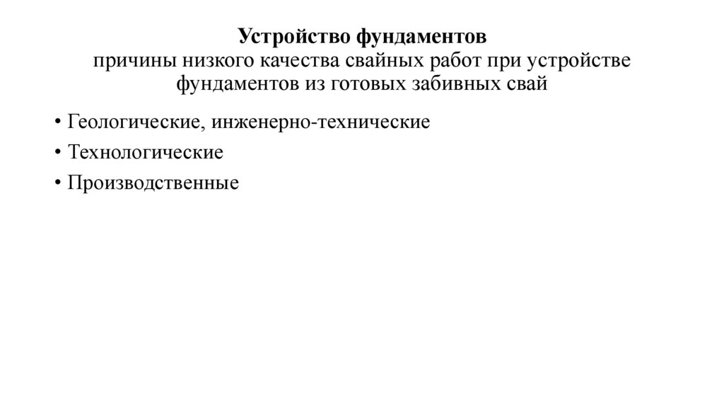 21. Устройство фундаментов причины низкого качества свайных работ при устройстве фундаментов из готовых забивных свай