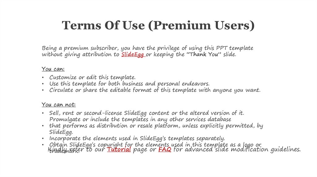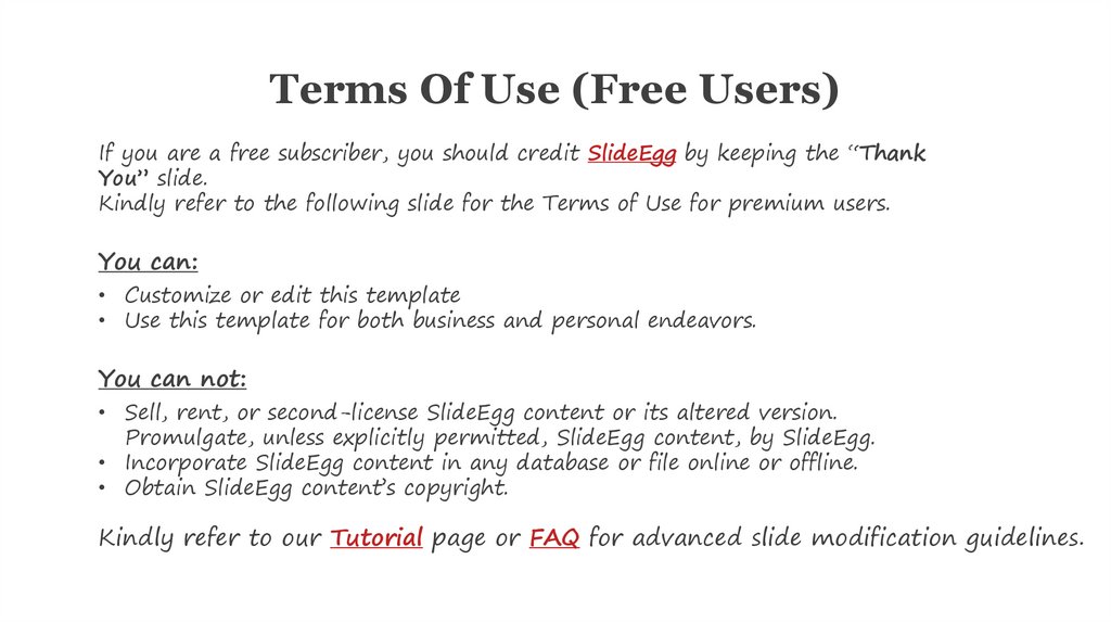 Terms Of Use (Free Users)If you are a free subscriber, you should credit SlideEgg by keeping the “Thank