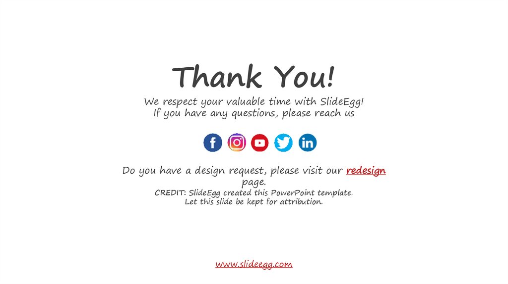 without giving attribution to SlideEgg or keeping the “Thank You” slide.