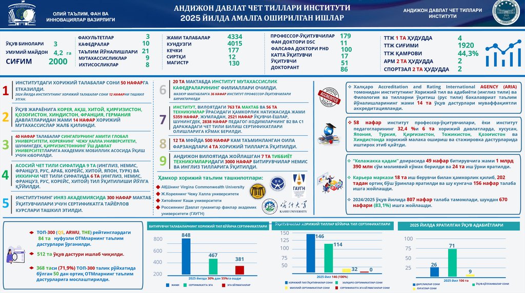 2024/2025 ўқув йилида 807 нафар талаба тамомлади, шундан 670