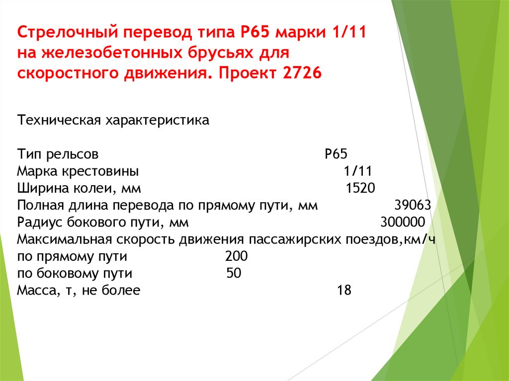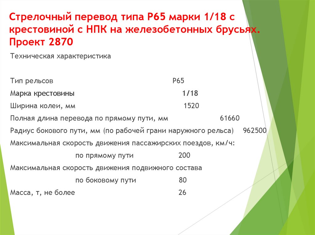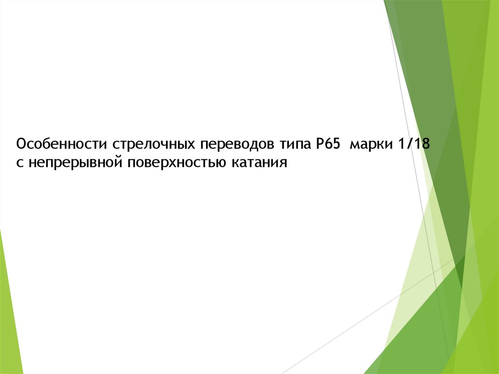Особенности стрелочных переводов типа Р65 марки 1/18с непрерывной поверхностью катания