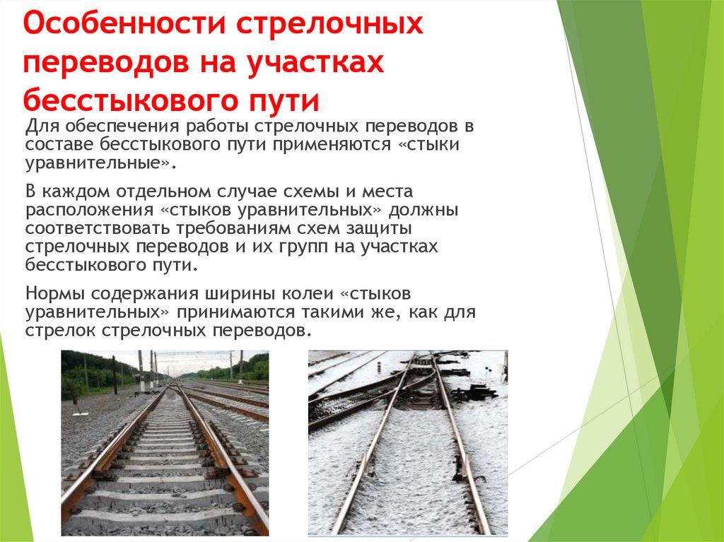22. Особенности стрелочных переводов на участках бесстыкового пути