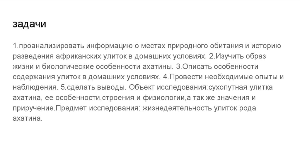 приручение.Предмет исследования: жизнедеятельность улиток рода