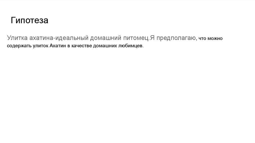 ГипотезаУлитка ахатина-идеальный домашний питомец.Я предполагаю, что можно