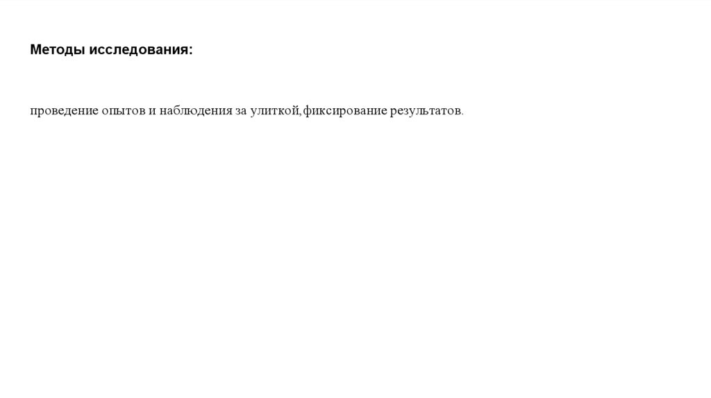 Методы исследования:проведение опытов и наблюдения за улиткой,фиксирование результатов.