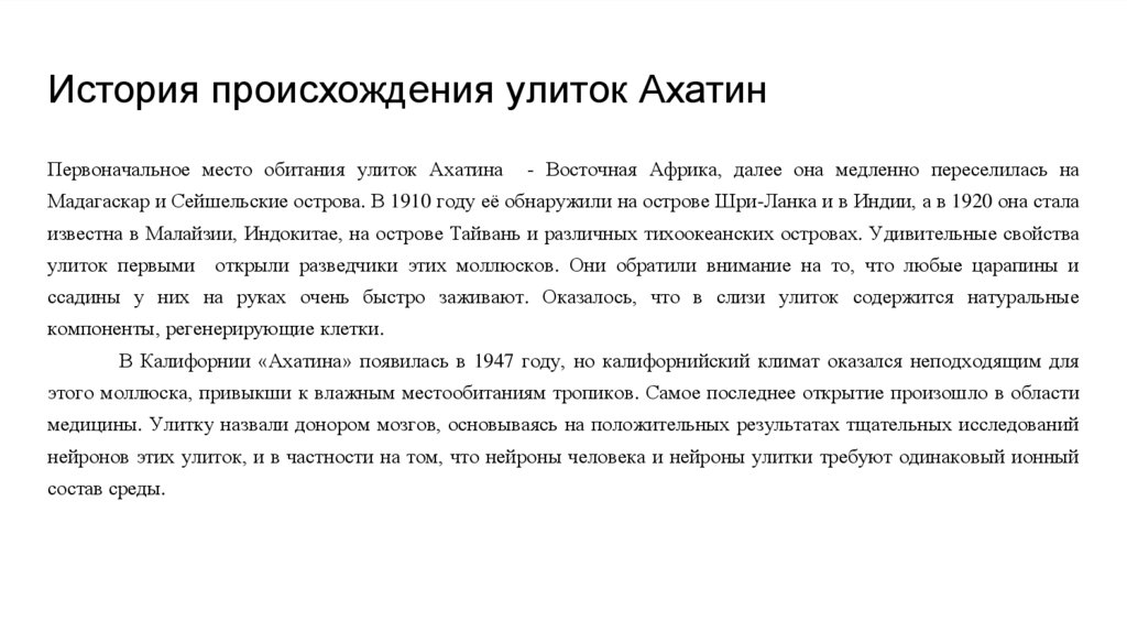 История происхождения улиток АхатинПервоначальное место обитания улиток Ахатина
