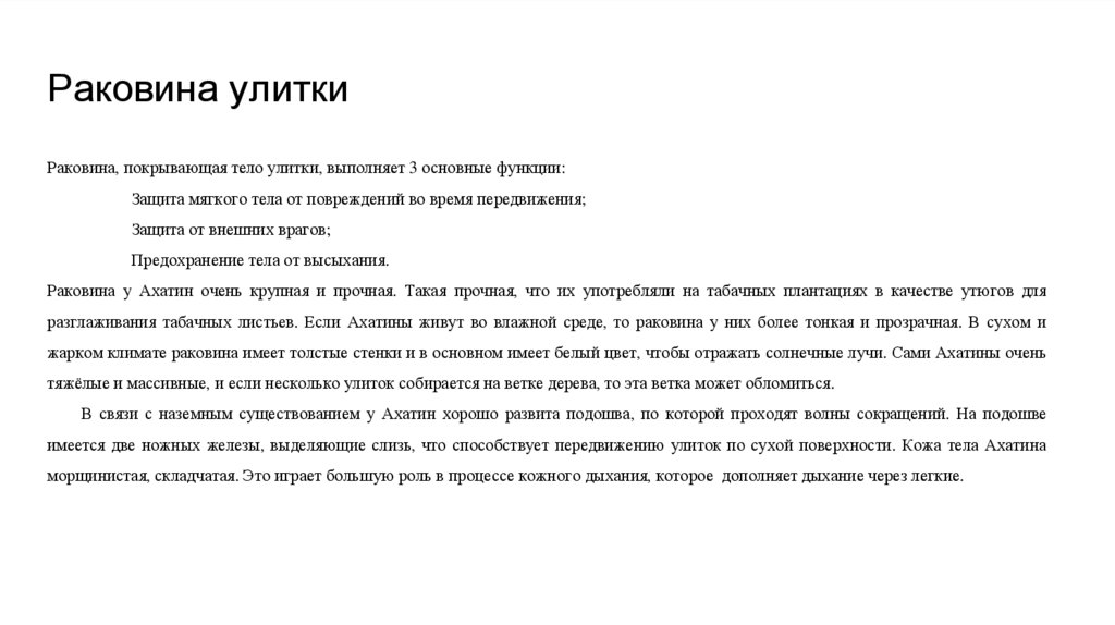 Раковина у Ахатин очень крупная и прочная. Такая прочная, что их употребляли на табачных плантациях в качестве утюгов для
