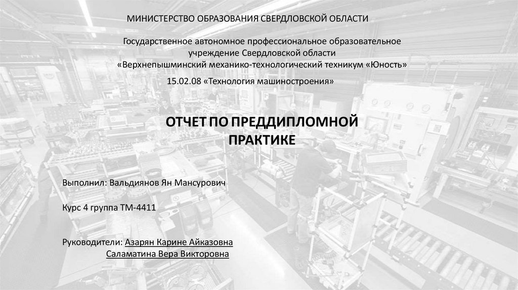 МИНИСТЕРСТВО ОБРАЗОВАНИЯ СВЕРДЛОВСКОЙ ОБЛАСТИГосударственное автономное профессиональное образовательное