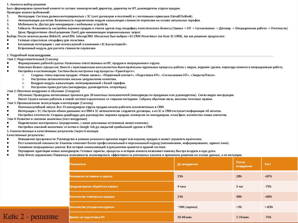 КЕЙС 2 опытом и операционной эффективностью, который напрямую влияет на финансовый результат
