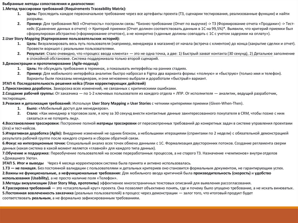 3.Методы визуализации (User Story Map, прототипы) эффективнее многостраничных текстовых описаний для выявления рассогласования.