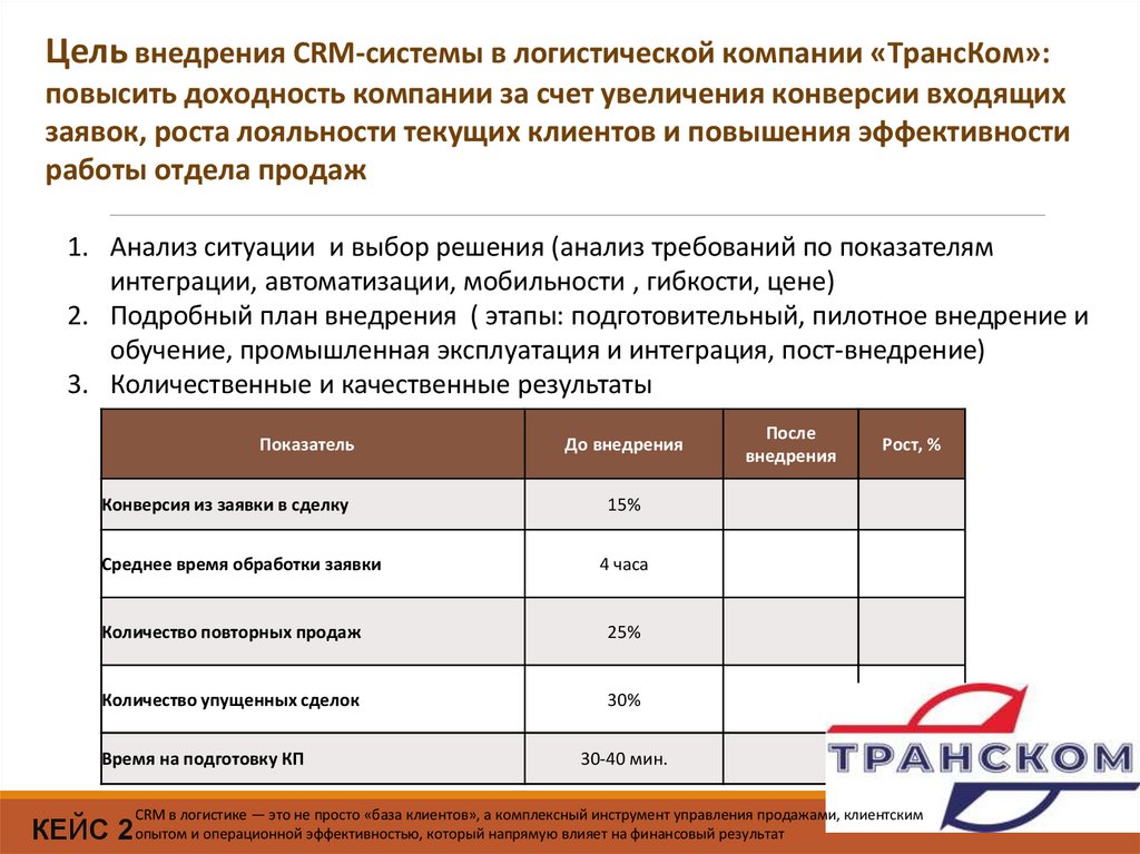 4. Внедрение CRM-системы в логистической компании «ТрансКом»