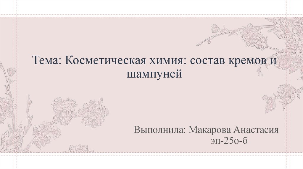 1. Тема: Косметическая химия: состав кремов и шампуней Выполнила: Макарова Анастасия эп-25о-б