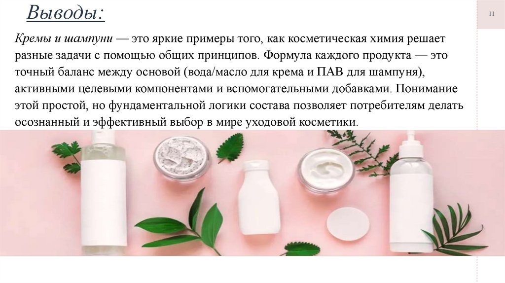 Кремы и шампуни — это яркие примеры того, как косметическая химия решаетразные задачи с помощью общих принципов. Формула каждого продукта — это