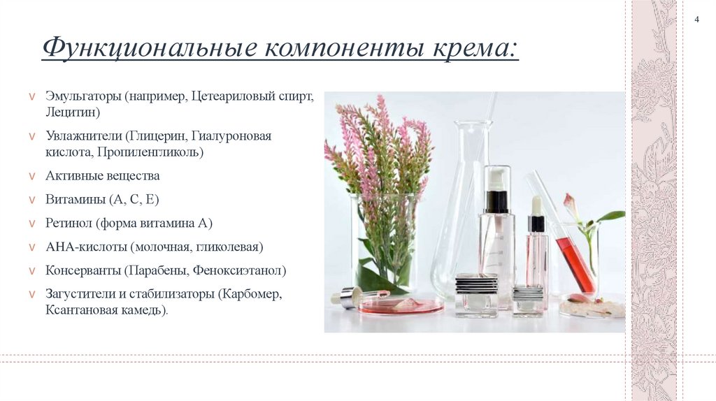 4. Функциональные компоненты крема: