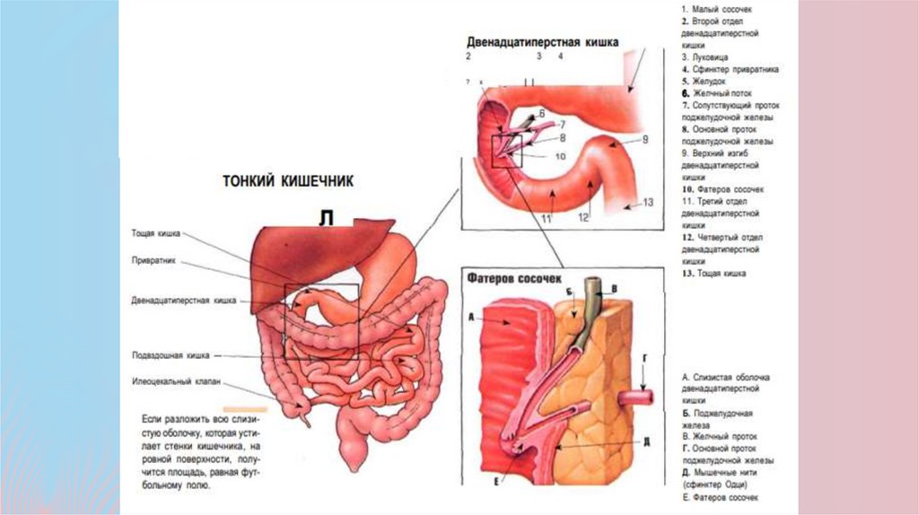 Тонкая кишка - место действия таких ферментов, как аминопептидазы, карбоксипептидазы,