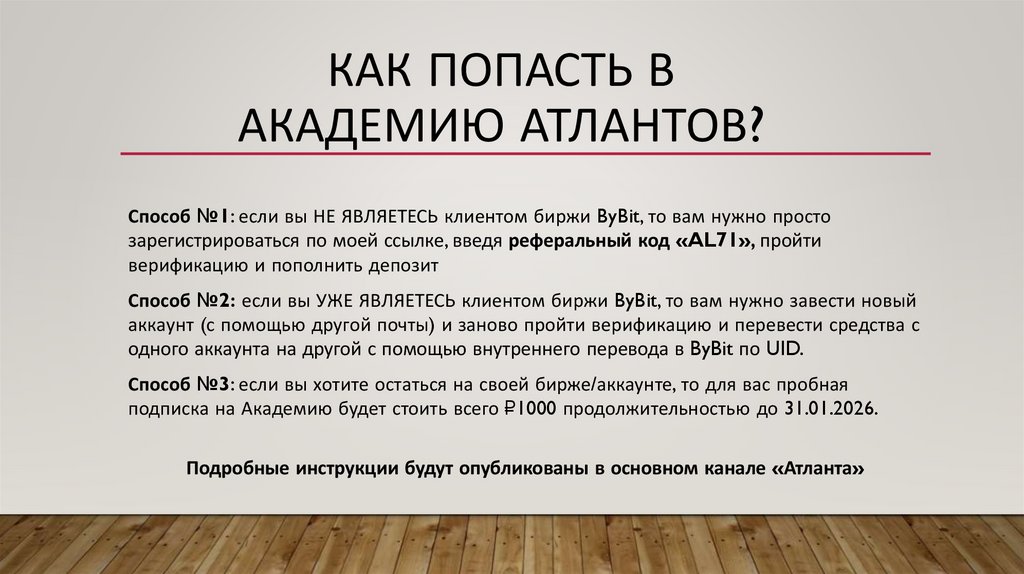 Подробные инструкции будут опубликованы в основном канале «Атланта»