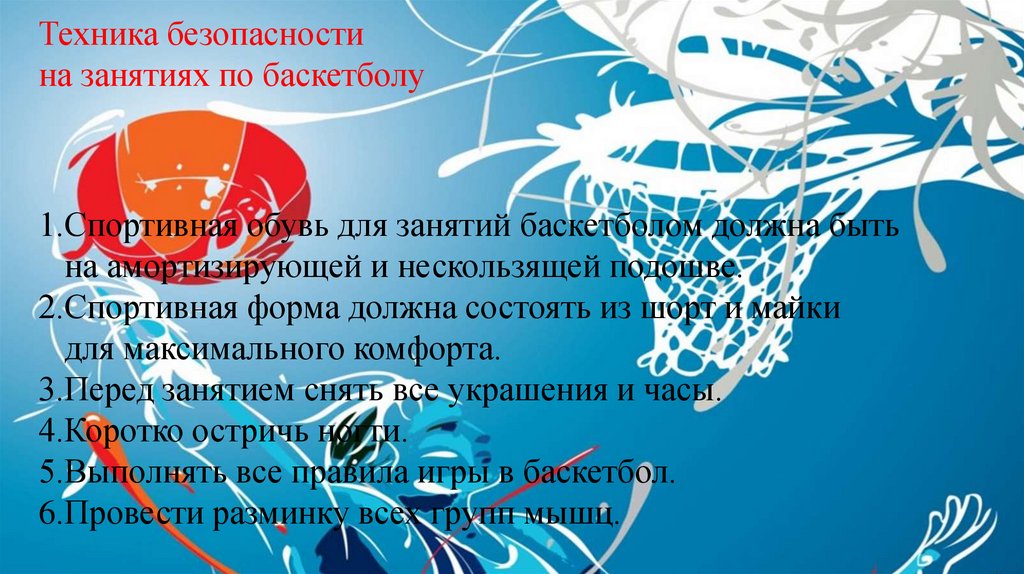 5.Занимающиеся должны иметь чистую спортивную форму и спортивную обувь.