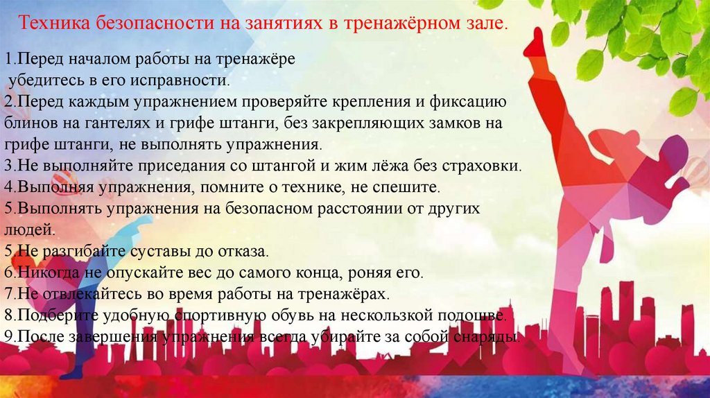 Техника безопасности на занятиях в тренажёрном зале.1.Перед началом работы на тренажёре