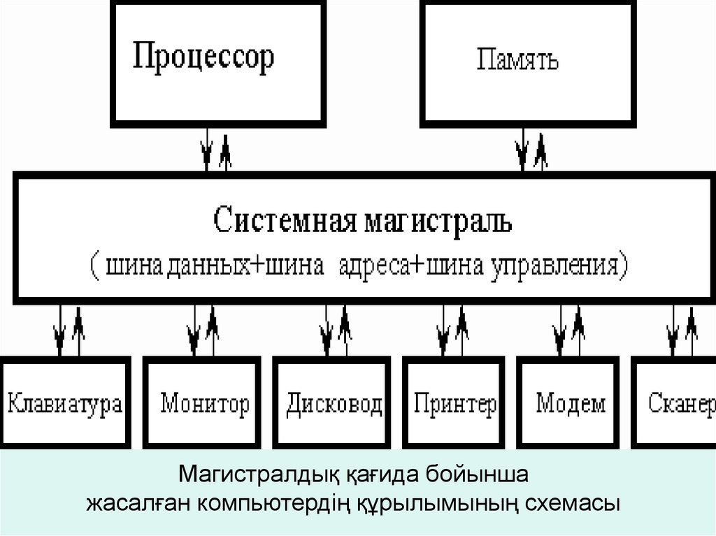 Магистралдық қағида бойыншажасалған компьютердiң құрылымының схемасы