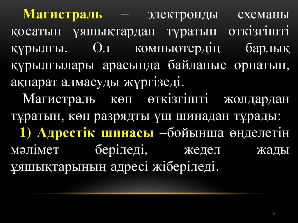 Магистраль – электронды схеманықосатын ұяшықтардан тұратын өткізгішті