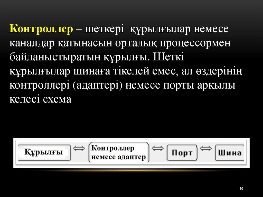 Контроллер – шеткері құрылғылар немесеканалдар қатынасын орталық процессормен