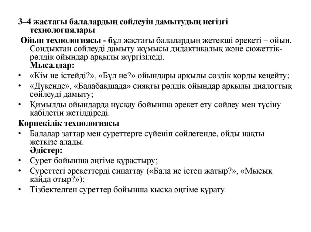 3–4 жастағы балалардың сөйлеуін дамытудың негізгітехнологиялары