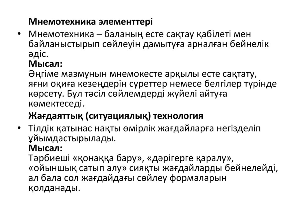• Тестік әдістер – сөздік қоры, сөйлем құрау, дыбыстық мәдениет