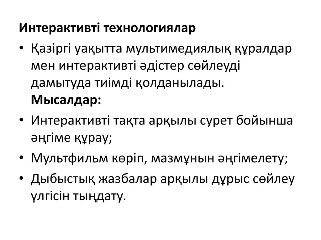 Интерактивті технологиялар• Қазіргі уақытта мультимедиялық құралдар