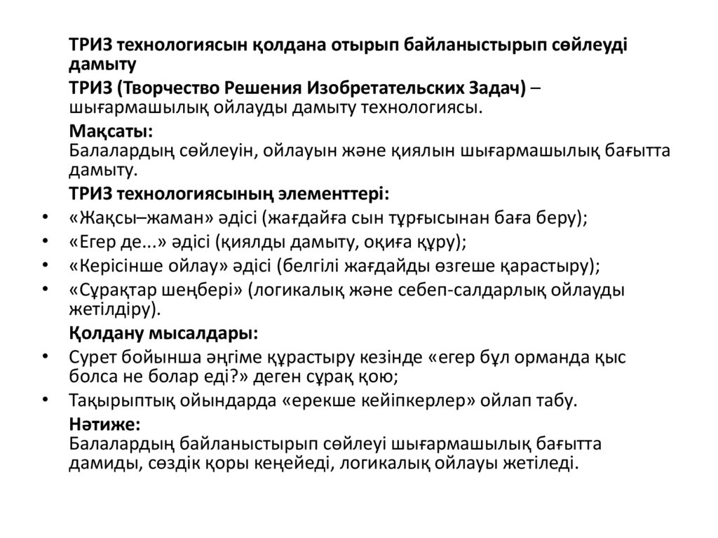 ТРИЗ технологиясын қолдана отырып байланыстырып сөйлеуді