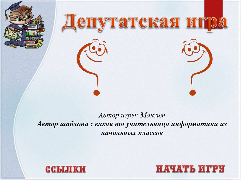 Автор игры: МаксимАвтор шаблона : какая то учительница информатики из