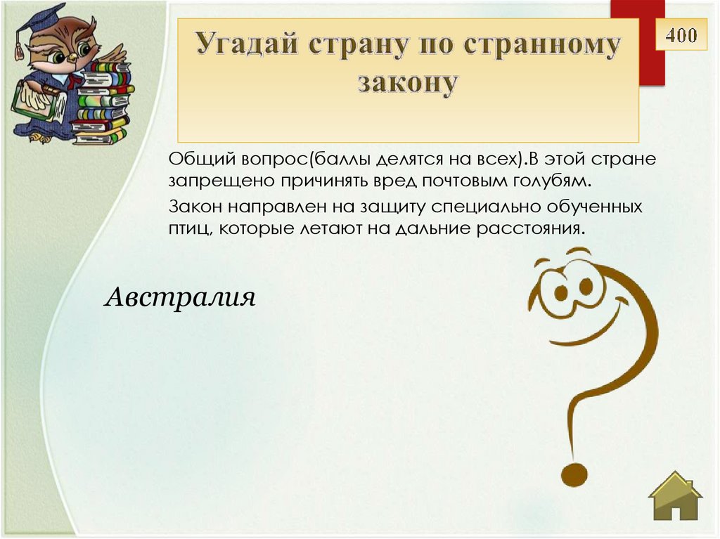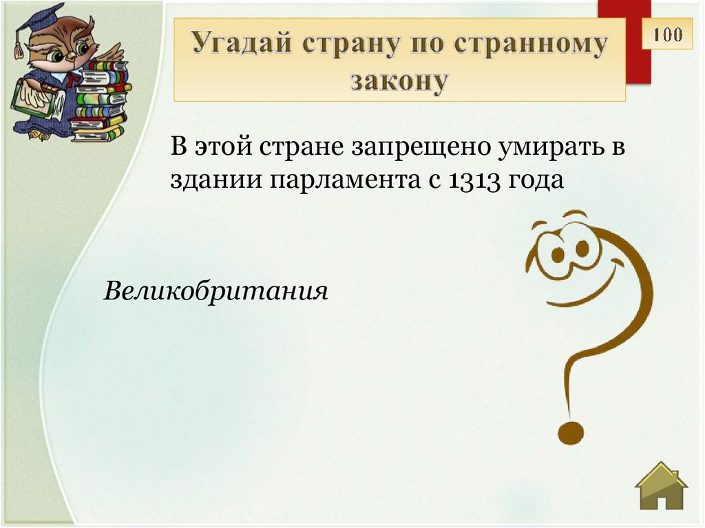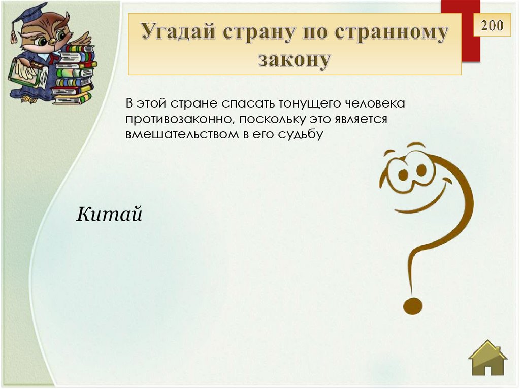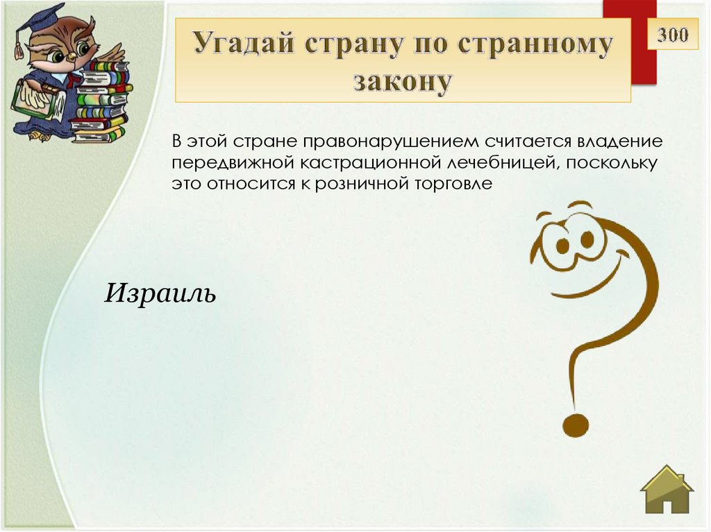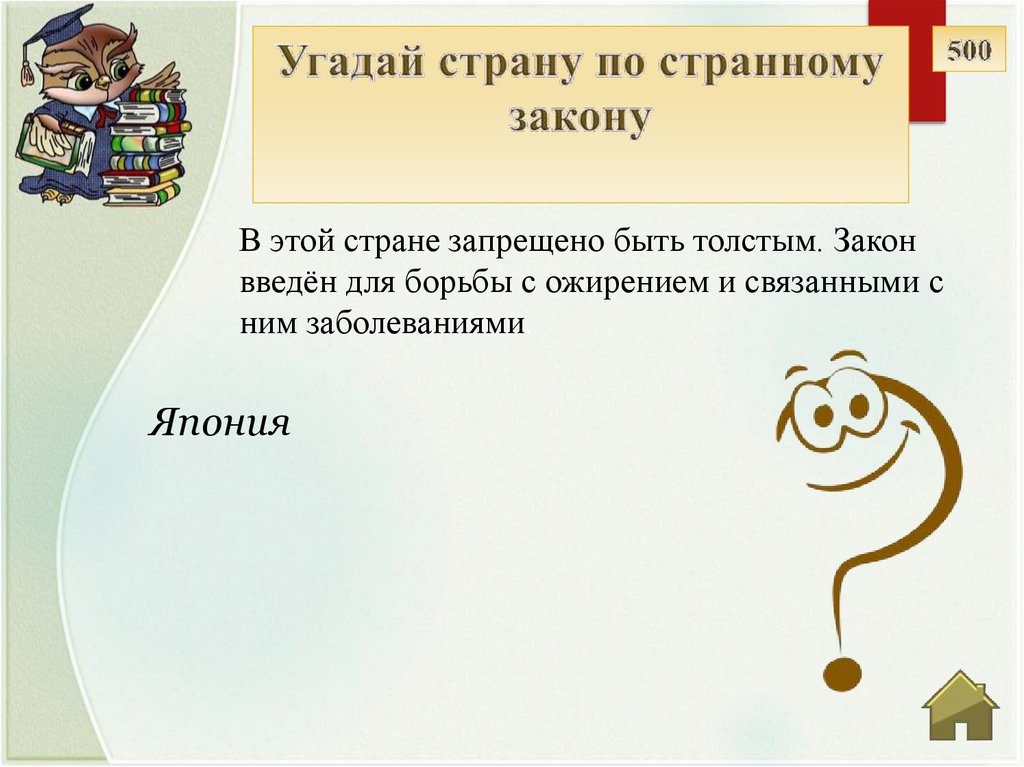 УГАДАЙ СТРАНУ ПО СТРАННОМУ ЗАКОНУ