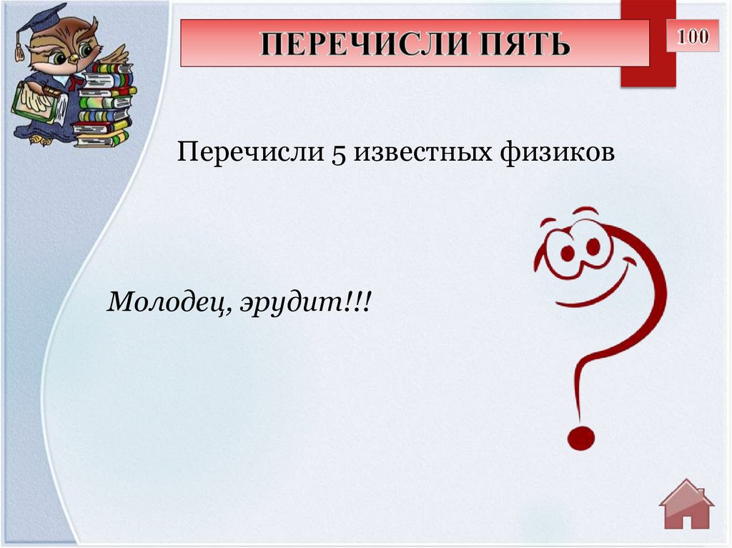 Перечисли 5 известных физиковМолодец, эрудит!!!