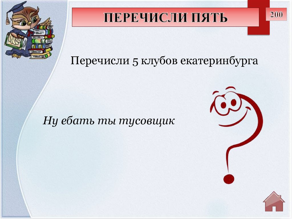 Перечисли 5 клубов екатеринбургаНу ебать ты тусовщик