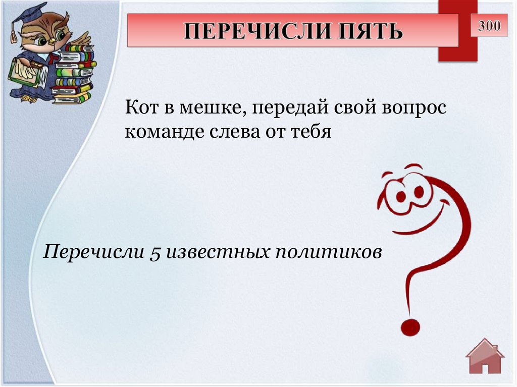 Кот в мешке, передай свой вопроскоманде слева от тебя