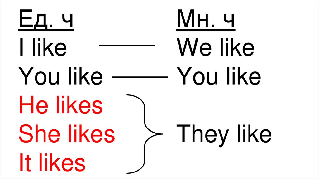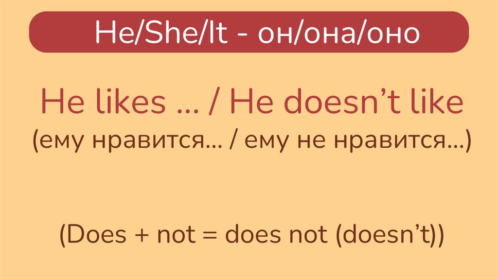 He/She/It - он/она/оноHe likes … / He doesn’t like