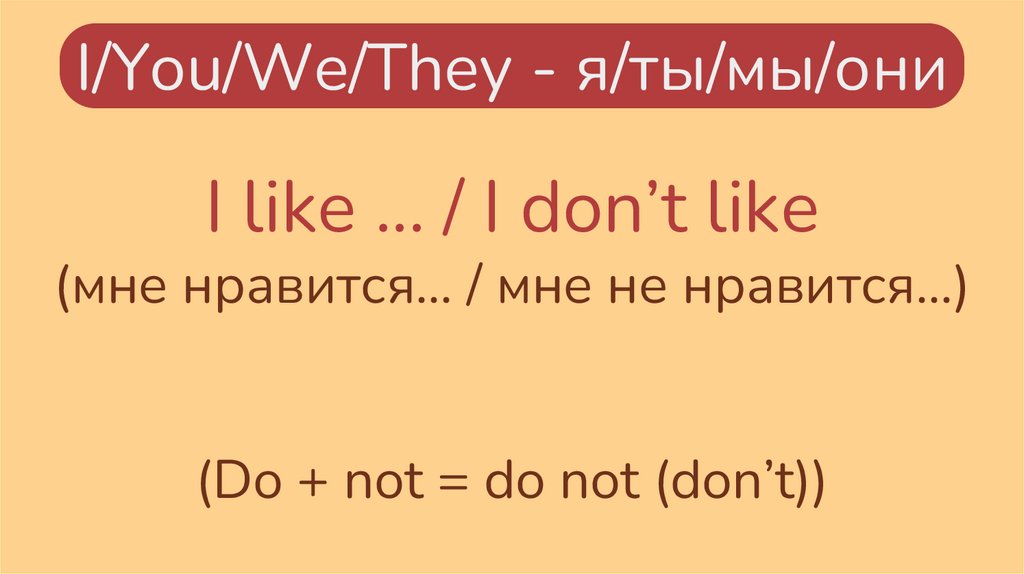 I/You/We/They - я/ты/мы/ониI like … / I don’t like