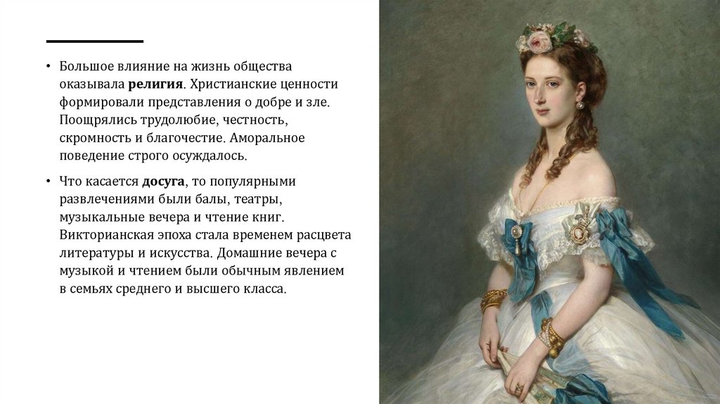 • Большое влияние на жизнь обществаоказывала религия. Христианские ценности