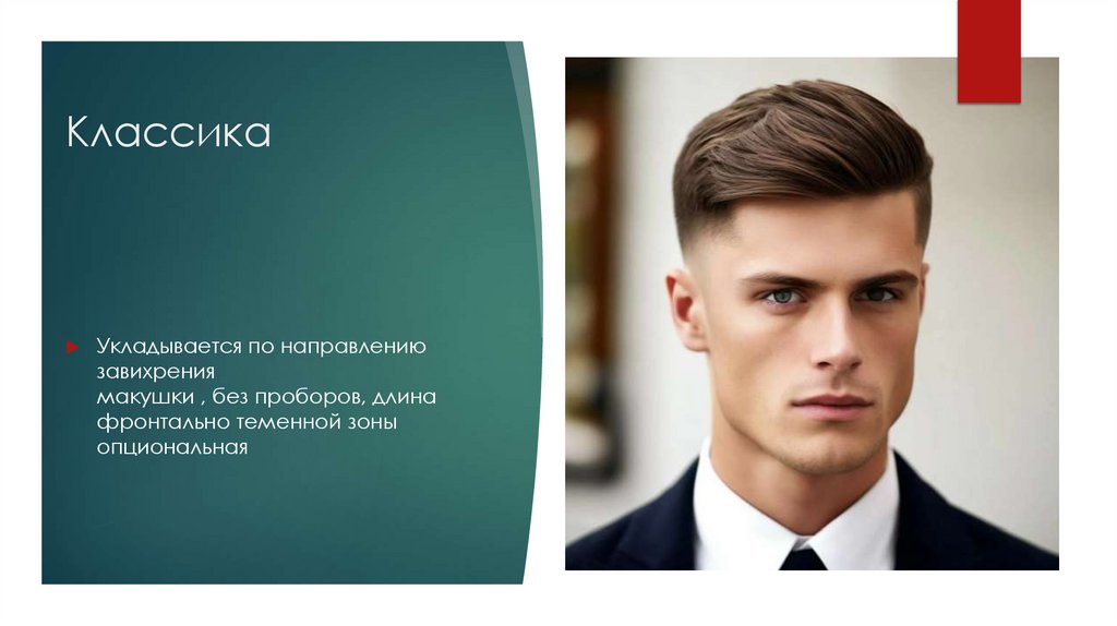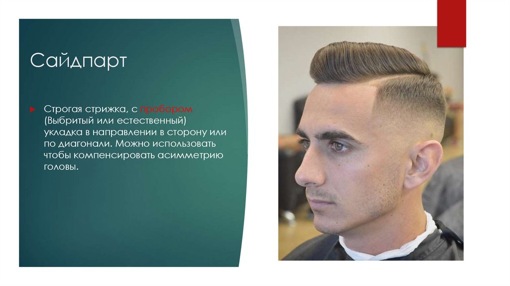 Строгая стрижка, с пробором(Выбритый или естественный)