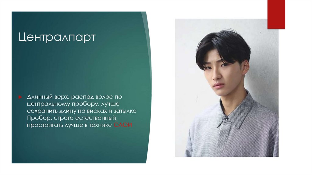 Длинный верх, распад волос поцентральному пробору, лучше