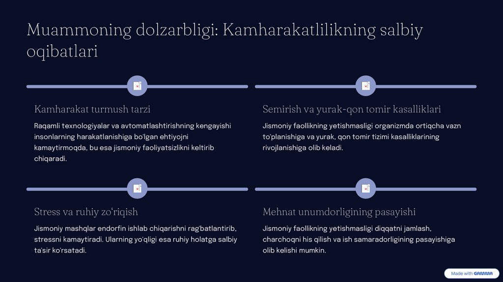 Muammoning dolzarbligi: Kamharakatlilikning salbiyoqibatlari