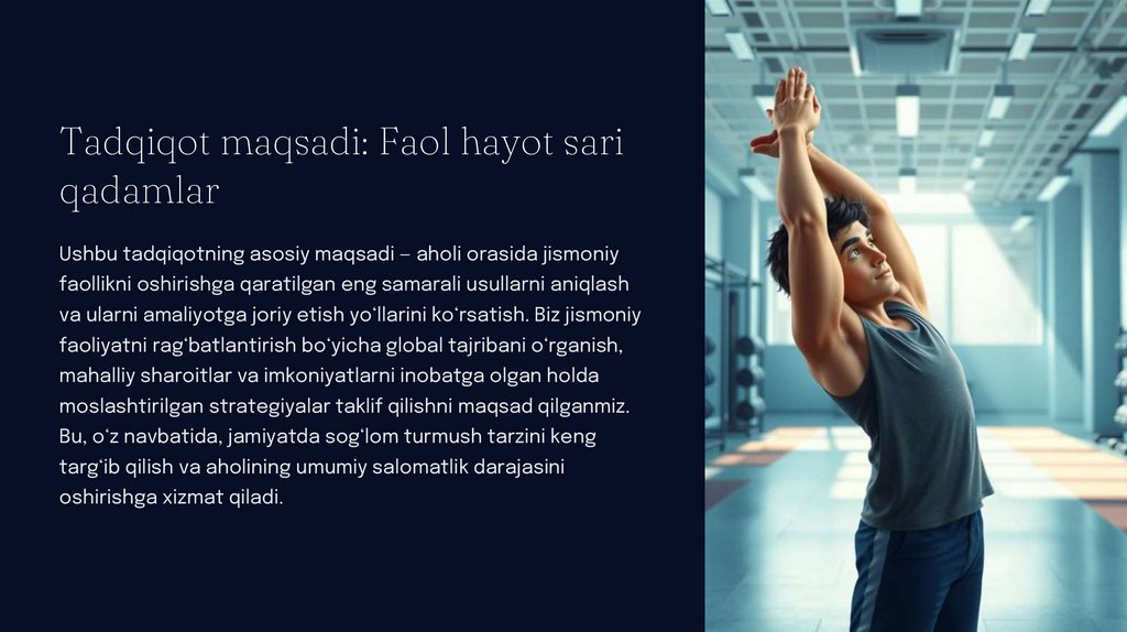 Ushbu tadqiqotning asosiy maqsadi — aholi orasida jismoniy