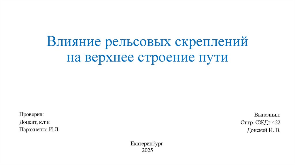 10.Кузнецова Н. В., Сидорова Е. А. Особенности влияния промежуточных рельсовых скреплений на эксплуатационную стойкость